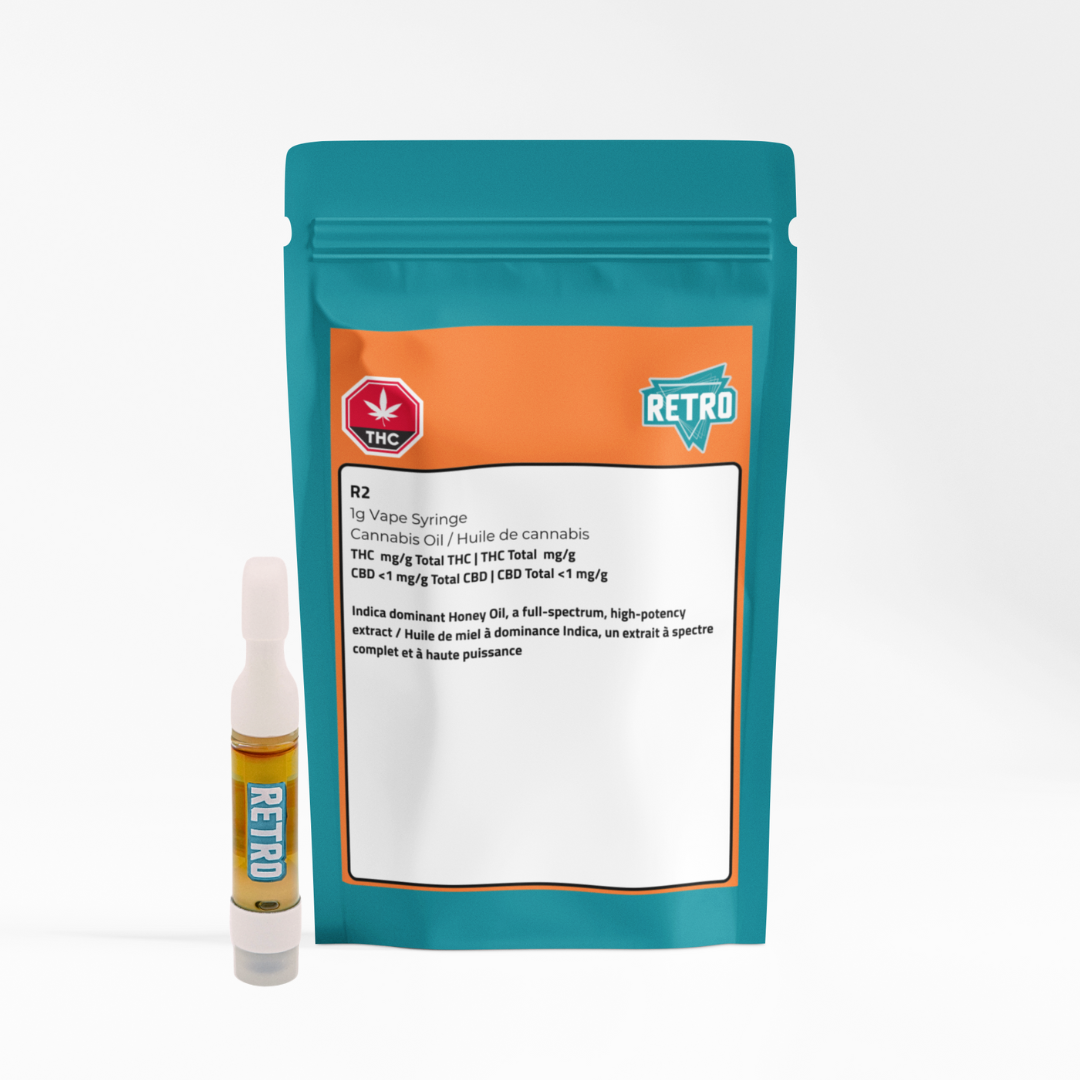 Born on the East Coast and crafted for pure relaxation, R2 Honey Oil is an indica-dominant full-spectrum extract made to help you unwind, de-stress, and settle into a smooth, balanced state. Whether you’re winding down from a long day or kicking back for the weekend, this rich, terpene-packed oil delivers a potent yet mellow experience, perfect for any time you need to take it easy. Produced with Retro’s advanced CO2 extraction, this fully decarbed honey oil preserves the full spectrum of natural cannabinoids and terpenes, making it versatile, flavorful, and effortlessly smooth. Ready to enjoy straight from the syringe—dab it, mix it, roll it, or infuse it into your favorite food—this East Coast original is your new go-to for premium craft relaxation.